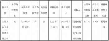 公告显示,大众企管本次质押股数为5,400万股A股,占其所持股份比例9.71%,占公司总股本比例1.83%,质押起始日为2022年7月11日,质押到期日为2023年7月10日,质权人为交通银行股份有限公司上海浦东分行,质押融资资金用途为偿还债务。