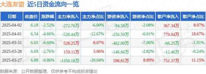 大连友谊(000679)4月2日主力资金净卖出272.76万元