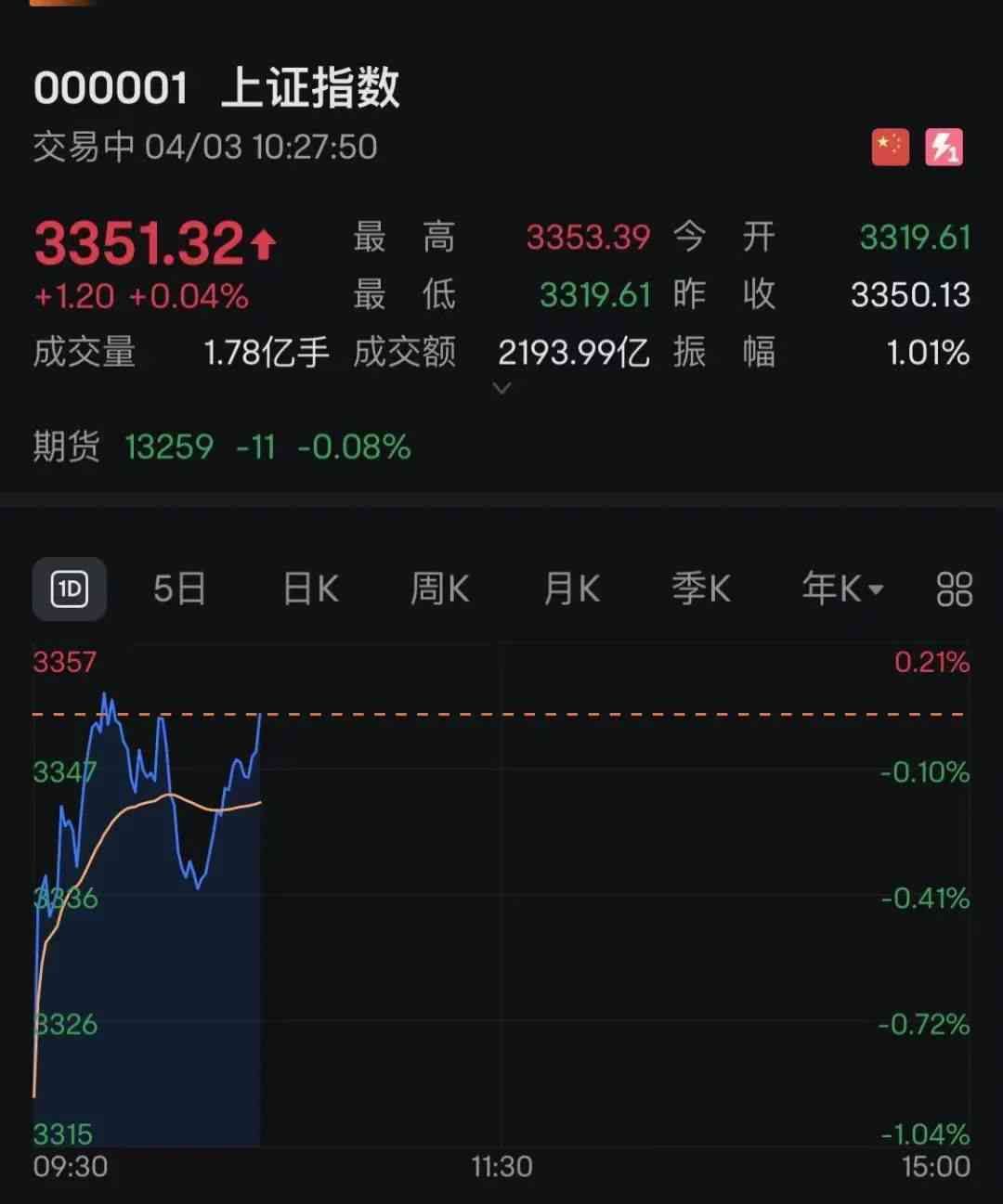 受到美国总统特朗普最新的关税政策影响,4月3日,三大指数集体低开,不过随后集体拉升,沪指翻红,盘面上,板块普跌,工程机械、电气设备、工业机械、汽车等板块跌幅居前。