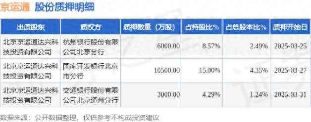 京运通(601908)股东北京京运通达兴科技投资有限公司质押1.95亿股,占总股本8.08%