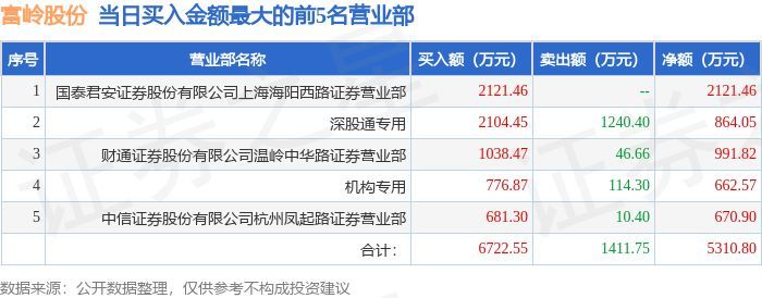 从龙虎榜公布的当日买卖数据来看,机构合计净买入662.57万元,北向资金合计净买入864.05万元。章盟主等知名游资榜上有名。(知名游资章盟主一般指国泰君安证券股份有限公司上海海阳西路证券营业部席位,根据市场资料整理,仅供参考)