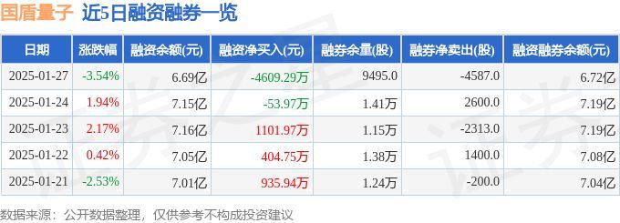 国盾量子融资融券信息显示,融资方面,当日融资买入3889.31万元,融资偿还8498.6万元,融资净偿还4609.29万元。融券方面,融券卖出1500.0股,融券偿还6087.0股,融券余量9495.0股,融券余额247.53万元。融资融券余额6.72亿元。