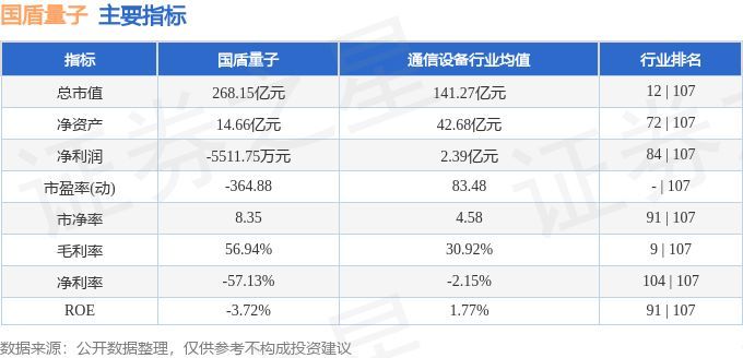 国盾量子2024年三季报显示,公司主营收入9971.48万元,同比上升36.1%;归母净利润-5511.75万元,同比上升30.33%;扣非净利润-7325.79万元,同比上升28.9%;其中2024年第三季度,公司单季度主营收入3017.88万元,同比上升83.19%;单季度归母净利润-1977.47万元,同比上升46.79%;单季度扣非净利润-2854.05万元,同比上升36.07%;负债率16.02%,投资收益-136.22万元,财务费用-865.22万元,毛利率56.94%。国盾量子(688027)主营业务:主要从事量子通信、量子计算、量子精密测量产品的研发、生产和销售,并提供相关的技术服务。