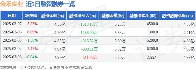 金禾实业融资融券信息显示,融资方面,当日融资买入6120.69万元,融资偿还7638.85万元,融资净偿还1518.15万元。融券方面,融券卖出5500.0股,融券偿还1000.0股,融券余量6.28万股,融券余额151.79万元。融资融券余额4.56亿元。