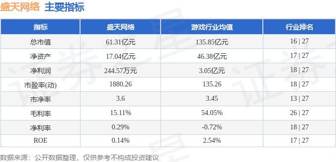 盛天网络2024年三季报显示,公司主营收入8.52亿元,同比下降21.27%;归母净利润244.57万元,同比下降98.63%;扣非净利润-638.26万元,同比下降103.67%;其中2024年第三季度,公司单季度主营收入3.13亿元,同比上升15.61%;单季度归母净利润-162.15万元,同比下降104.89%;单季度扣非净利润-428.58万元,同比下降112.79%;负债率8.03%,投资收益294.75万元,财务费用-815.87万元,毛利率15.11%。盛天网络(300494)主营业务:盛天网络是国内领先的场景化数字娱乐平台,多年来公司深入布局数字娱乐场景,凭借丰富的行业经验和精准的产品定位,构建了跨场景的平台、内容和服务体系,发展出语音社交、IP运营、游戏运营与发行、互联网营销等主营业务。