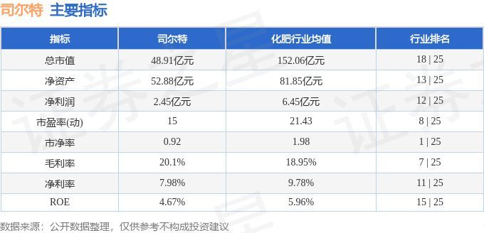 该股主要指标及行业内排名如下:
