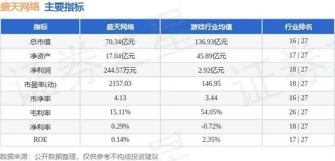 盛天网络2024年三季报显示,公司主营收入8.52亿元,同比下降21.27%;归母净利润244.57万元,同比下降98.63%;扣非净利润-638.26万元,同比下降103.67%;其中2024年第三季度,公司单季度主营收入3.13亿元,同比上升15.61%;单季度归母净利润-162.15万元,同比下降104.89%;单季度扣非净利润-428.58万元,同比下降112.79%;负债率8.03%,投资收益294.75万元,财务费用-815.87万元,毛利率15.11%。盛天网络(300494)主营业务:盛天网络是国内领先的场景化数字娱乐平台,多年来公司深入布局数字娱乐场景,凭借丰富的行业经验和精准的产品定位,构建了跨场景的平台、内容和服务体系,发展出语音社交、IP运营、游戏运营与发行、互联网营销等主营业务。
