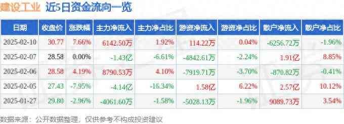 建设工业(002265)2月10日主力资金净买入6142.50万元