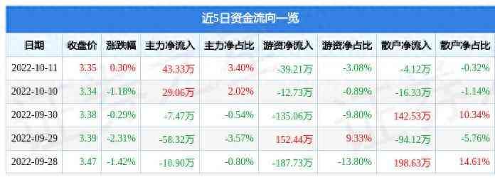 近5日资金流向一览见下表: