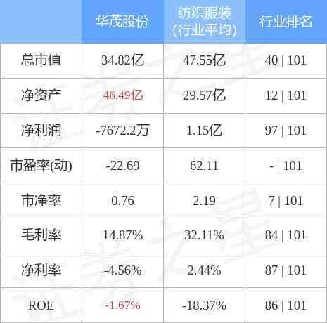 华茂股份主要指标及行业内排名如下: