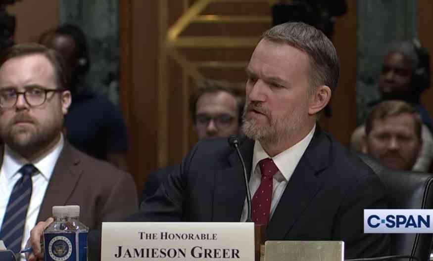 4月8日,美国贸易代表贾米森·格里尔在国会接受质询。C-SPAN