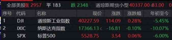 中新经纬4月29日电 美东时间4月28日,美股三大指数下探回升。截至收盘,道指涨0.28%报40227.59点,纳指跌0.10%报17366.13点,标普500指数涨0.06%报5528.75点。