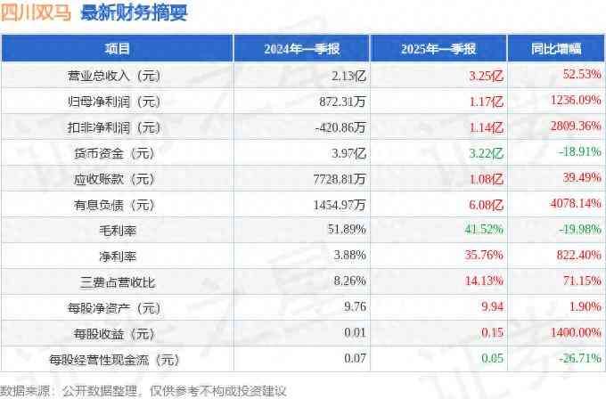 四川双马(000935)2025年一季报简析:营收净利润同比双双增长,三费占比上升明显