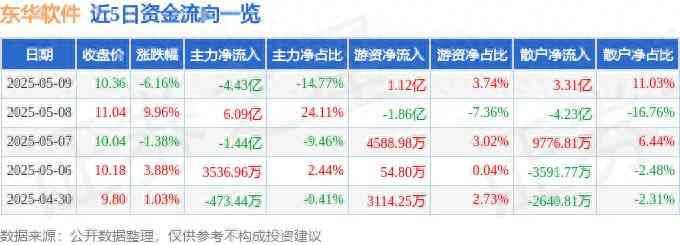 东华软件(002065)5月9日主力资金净卖出4.43亿元