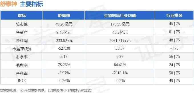 舒泰神2025年一季报显示,公司主营收入6321.4万元,同比下降33.45%;归母净利润-233.5万元,同比上升38.05%;扣非净利润-337.67万元,同比上升23.93%;负债率18.89%,投资收益-4.81万元,财务费用41.33万元,毛利率78.23%。舒泰神(300204)主营业务:自主知识产权创新药物,特别是生物药物的研发、生产和营销。
