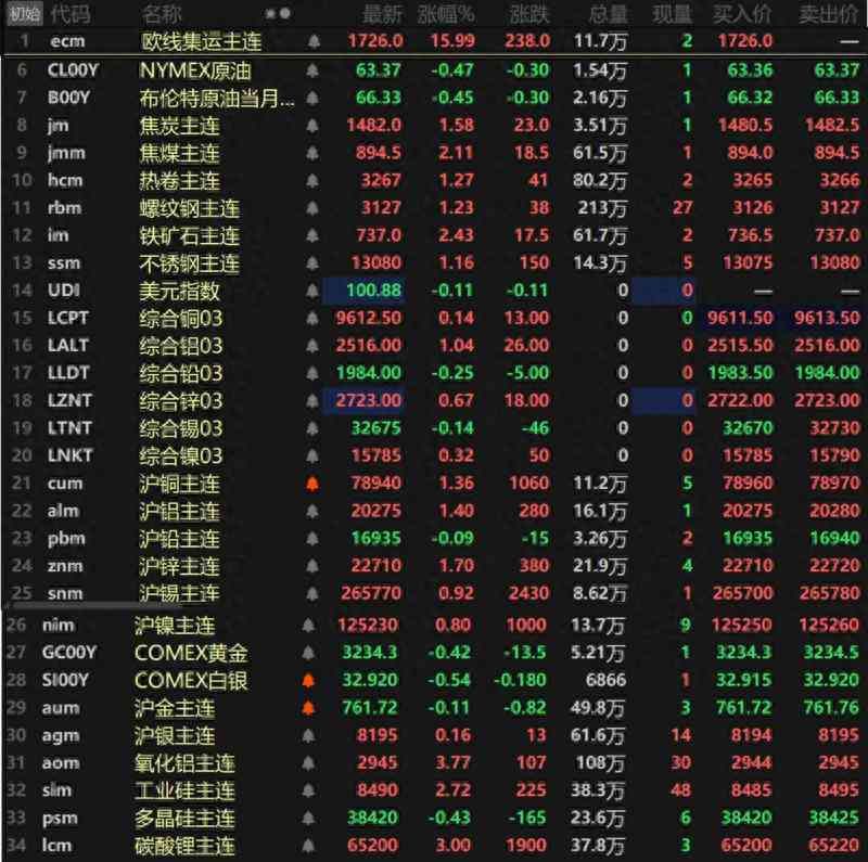 美元走软 金属多飘红 氧化铝领涨 碳酸锂涨3% 欧线集运涨停