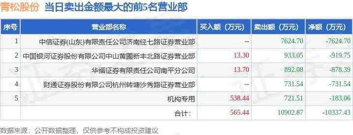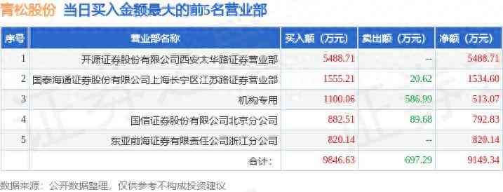 5月15日青松股份(300132)龙虎榜数据:游资章盟主上榜