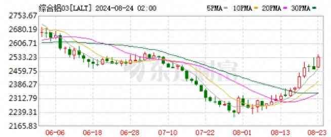 东方财富Choice终端显示,北京时间8月24日凌晨2点,伦敦金属交易所挂牌交易的综合铝03期货合约(代码:LALT)上涨2.16%,报收于2533.50美元/吨。自8月1日至记者发稿时,综合铝03期货合约累计上涨10.61%,走出一轮触底向上行情。《证券日报》记者采访了解,业内对铝市需求抱有乐观态度,在供应偏紧、需求旺盛的大背景下,铝市有望迎来景气行情。