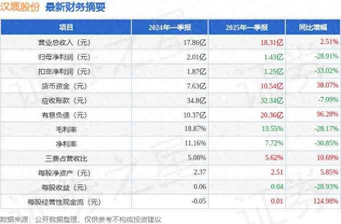 汉缆股份(002498)2025年一季报简析:增收不增利,公司应收账款体量较大