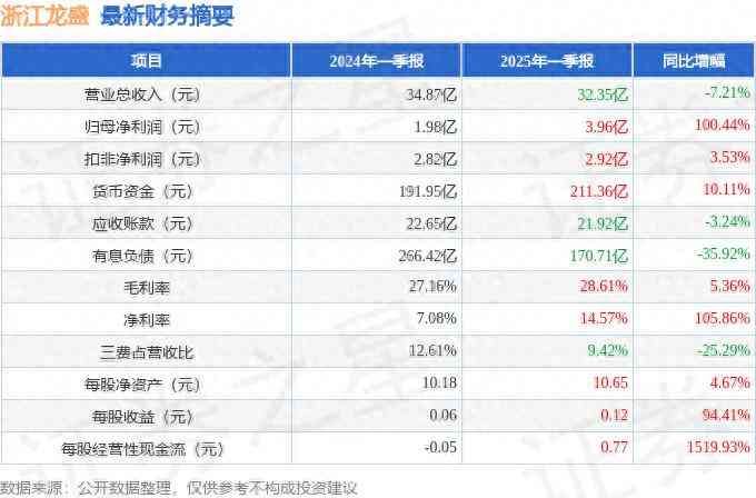 浙江龙盛(600352)2025年一季报简析:净利润增100.44%,盈利能力上升
