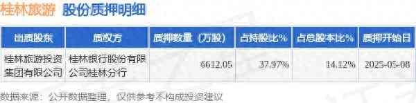 桂林旅游(000978)股东桂林旅游投资集团有限公司质押6612.05万股,占总股本14.12%