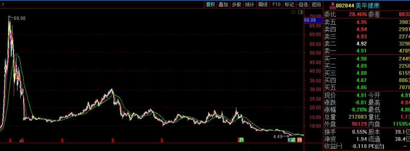 2015年5月19日,美年健康达到了历史的最高价,69.98元。2022年4月27日,股价跌到近7年的最低值,4.49元。但是算跌幅的话,不能用原价这样算的。