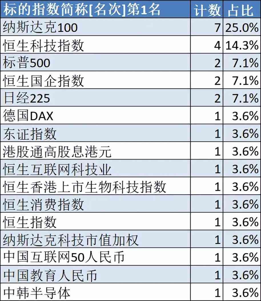 具体来看,28只QDII被动指数型基金,其中有7只是对标纳斯达克1指数,恒生科技指数有4只,标普5、恒生国企指数、日经225指数各有2只。