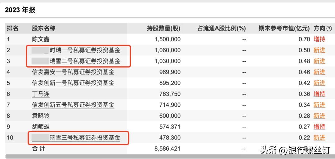 根据这家新三板公司2023年的年报,前十大流通股东中,有三只该私募旗下的基金。