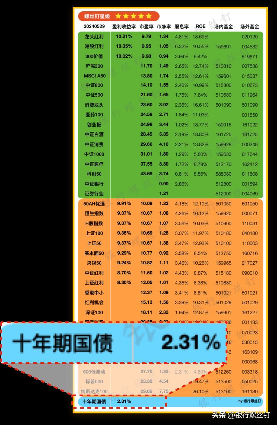 咱们每个交易日发布的估值表里,就有10年期国债收益率。