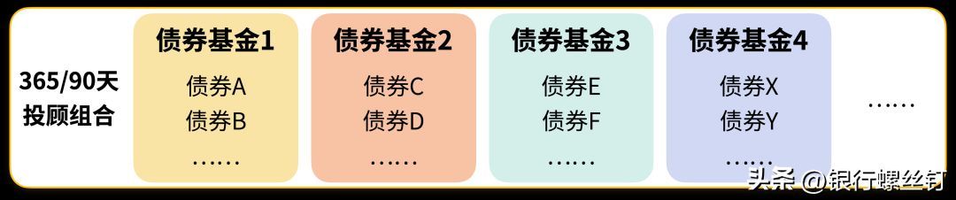 组合分散配置不同基金公司的基金,这些基金分散配置不同的债券。