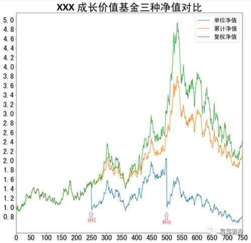 最后我们附上对单位净值、复权净值、累计净值的讲解图,以及三种净值同时放在一起的对比图,如下所示。
