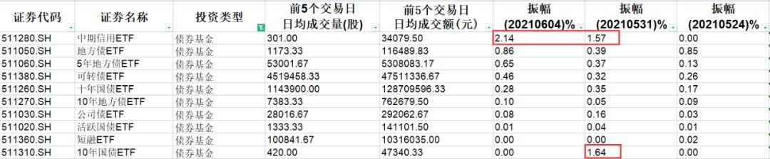 但是同时我们又发现,中期信用ETF、10年国债ETF的单日成交额太小了,一天的成交额才4万元,完全没法玩。