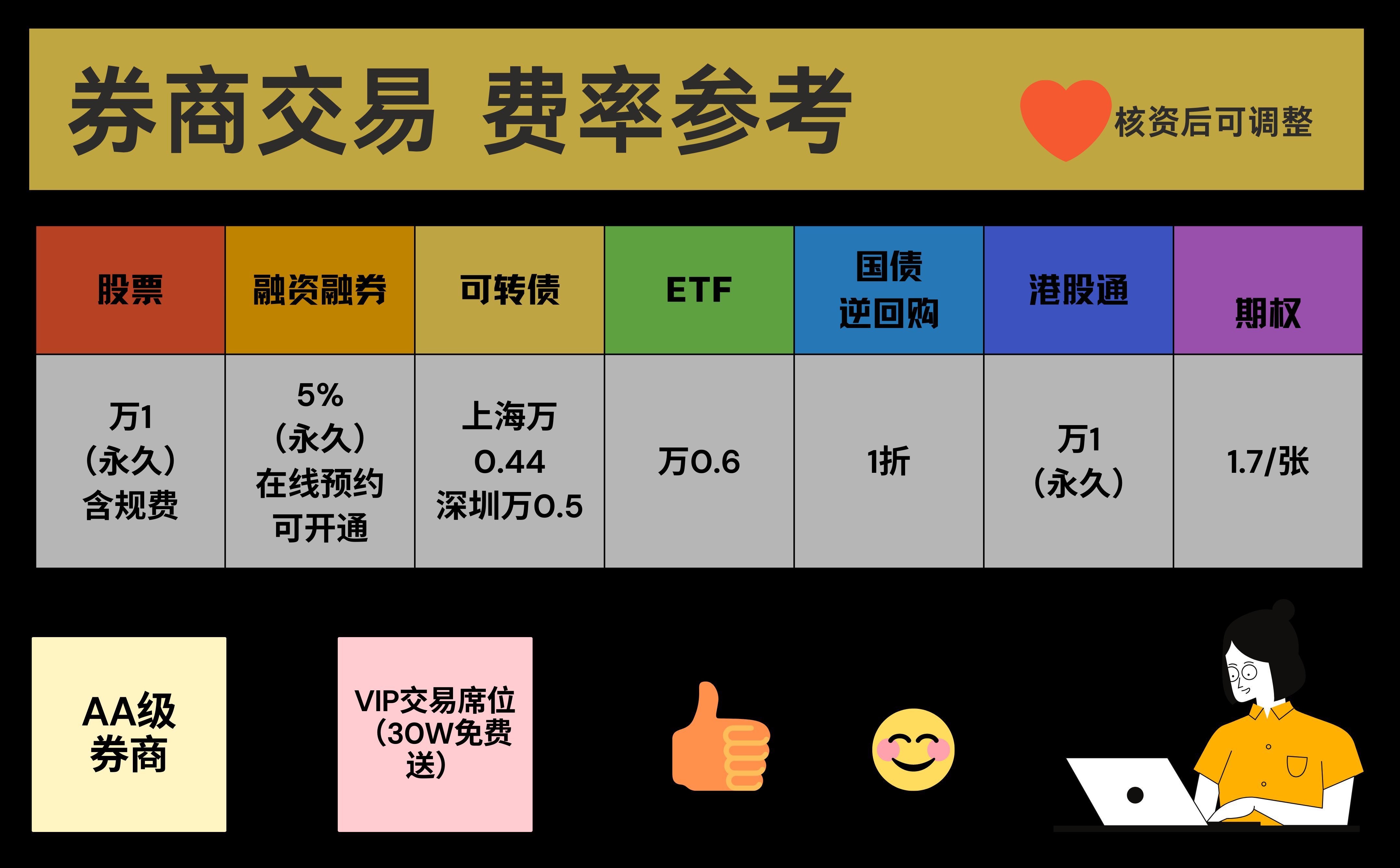 下面是我接触到的一家靠谱的AA级券商,它的具体费率详情如下: