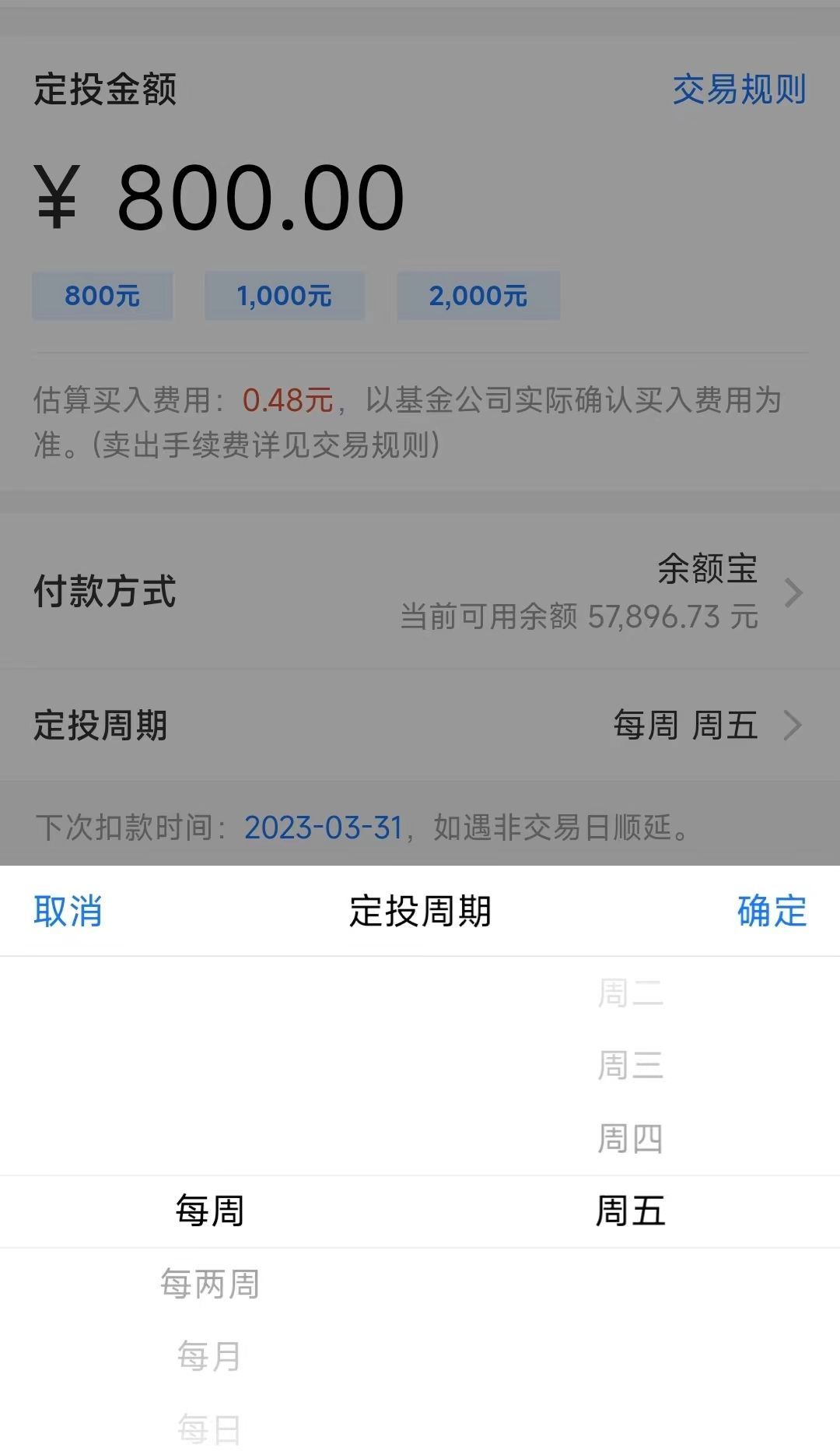 现在基金一般可以按月、周多次定投,或按日定投,因为手续费都是一样的,所以在这方面没有什么可纠结的,想选哪种选哪种。
