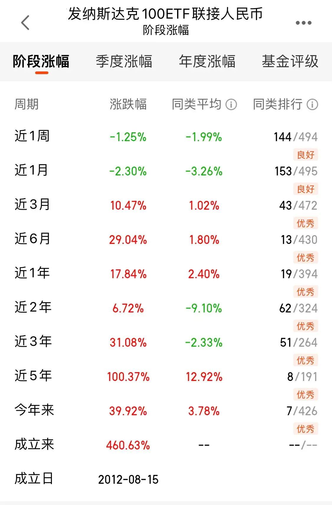 假设就用2742,某个纳斯达克QDII基金,成立于2012年,可追溯10年历史,基金规模66.45亿,成立来表现一直处于优秀和良好,算是一个很健康的基金了。