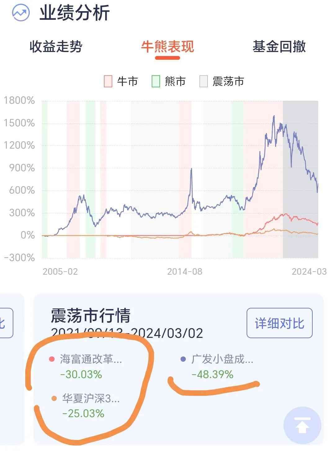 震荡行情(最近这几年应该算熊市),对比来看,海富通改革的跌幅跟沪深3差不多,这很好地体现了基金经理的主动管理能力。