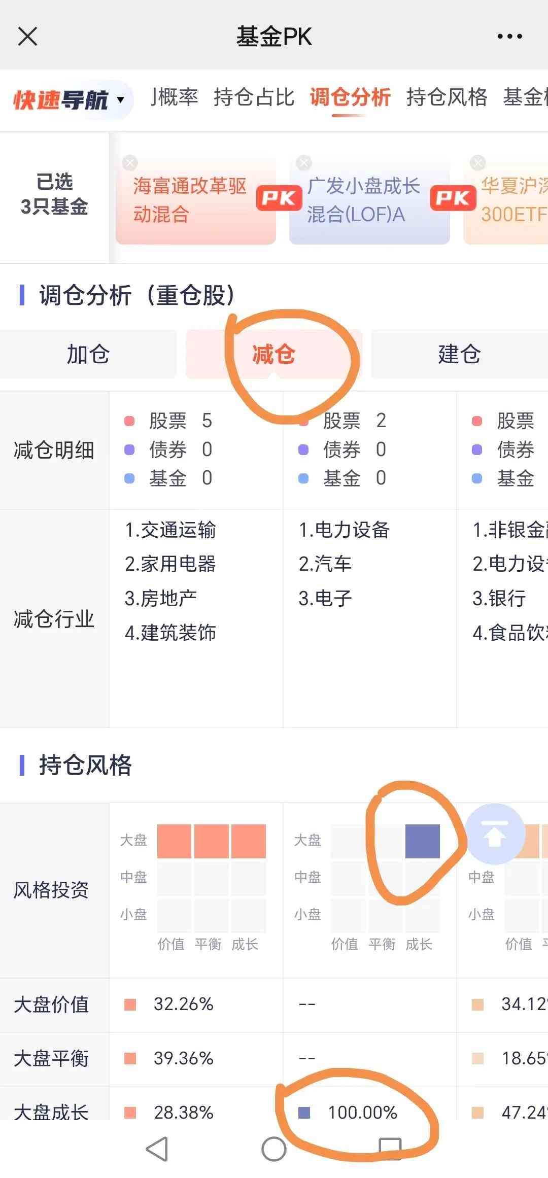 这次,在好买基金PK里面看到了减仓分析,眼睛一亮,可惜只是行业,若是有具体股票,再给你加一个卤蛋。