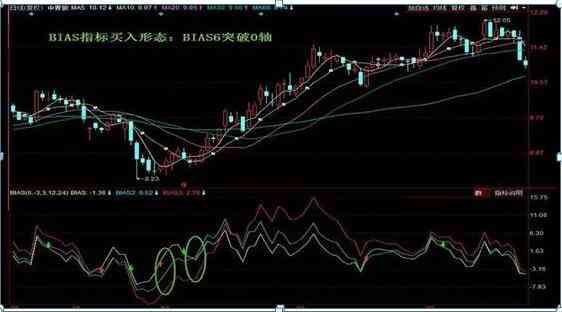 一旦BIAS 6突玻0,显示短期内行情已经转强,多方开始占据主动,当BIAS 12突破BIAS 6,说明上涨趋势已经形成,此时投资者可以买入股票。