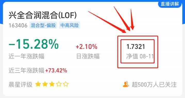 如图,今天兴全合润的单位净值就是1.7321元,如果在今天15:00前申购或者赎回该基金,每一份额成交价就是1.7321元。
