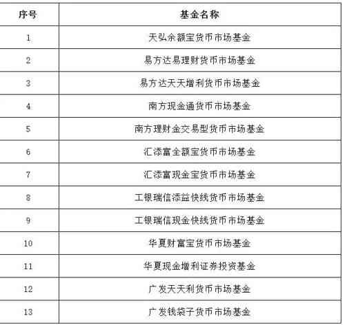 早在今年2月,证监会发布了首批重要货币市场基金名录,包括天弘余额宝、易方达易理财、易方达天天增利、南方现金通等在内的13只货基位列其中。
