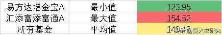 收益最高的是:易方达增金宝A,1万块钱能赚154.52元!收益最低的是汇添富添富通A,1万块钱能赚123.95元;而所有基金平均的话,1万块能赚140.43元。最高和最低值差了30.57元,从这一角度来看哈,如果你余额宝里的钱不到1万块,差别还真不大,不过苍蝇腿也是肉,这个看大家怎么看待了!如果你的余额宝资金有大几万,还是可以考虑换一换的!