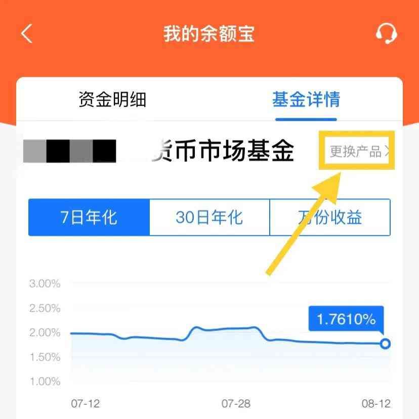 虽然利率一路下滑,现在连2%都不到了,但如果仔细看,余额宝上方有一行小字,可提示你如何更换产品,能换取更高收益。
