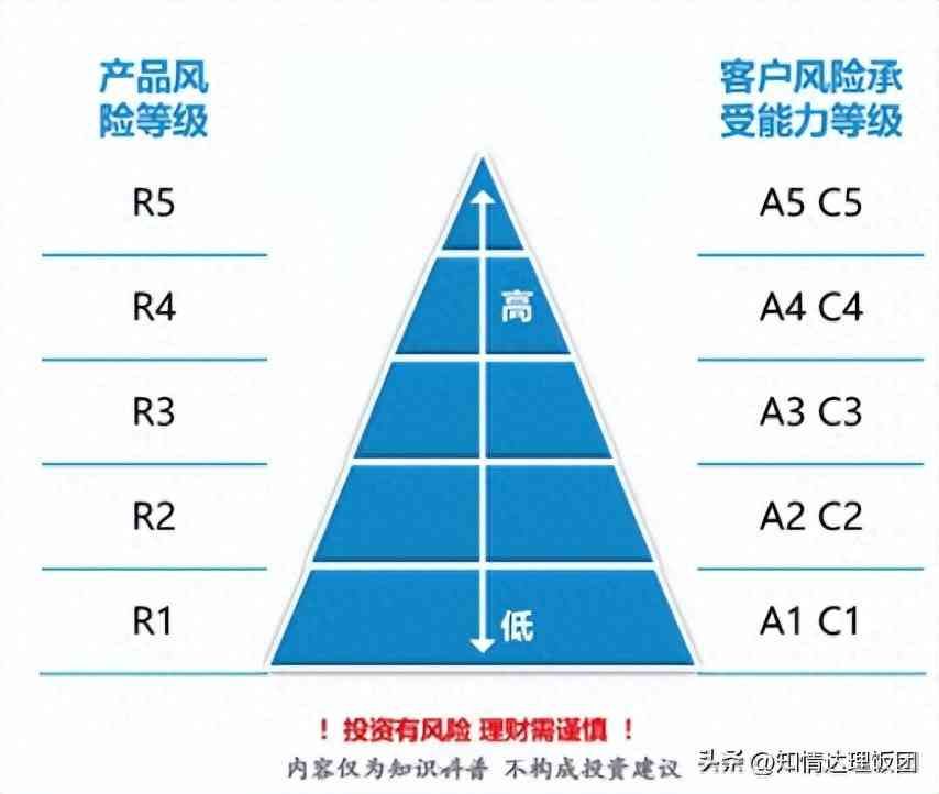 R1(低风险):国债/货币型基金/存款类产品/保本型理财,风险接近零;