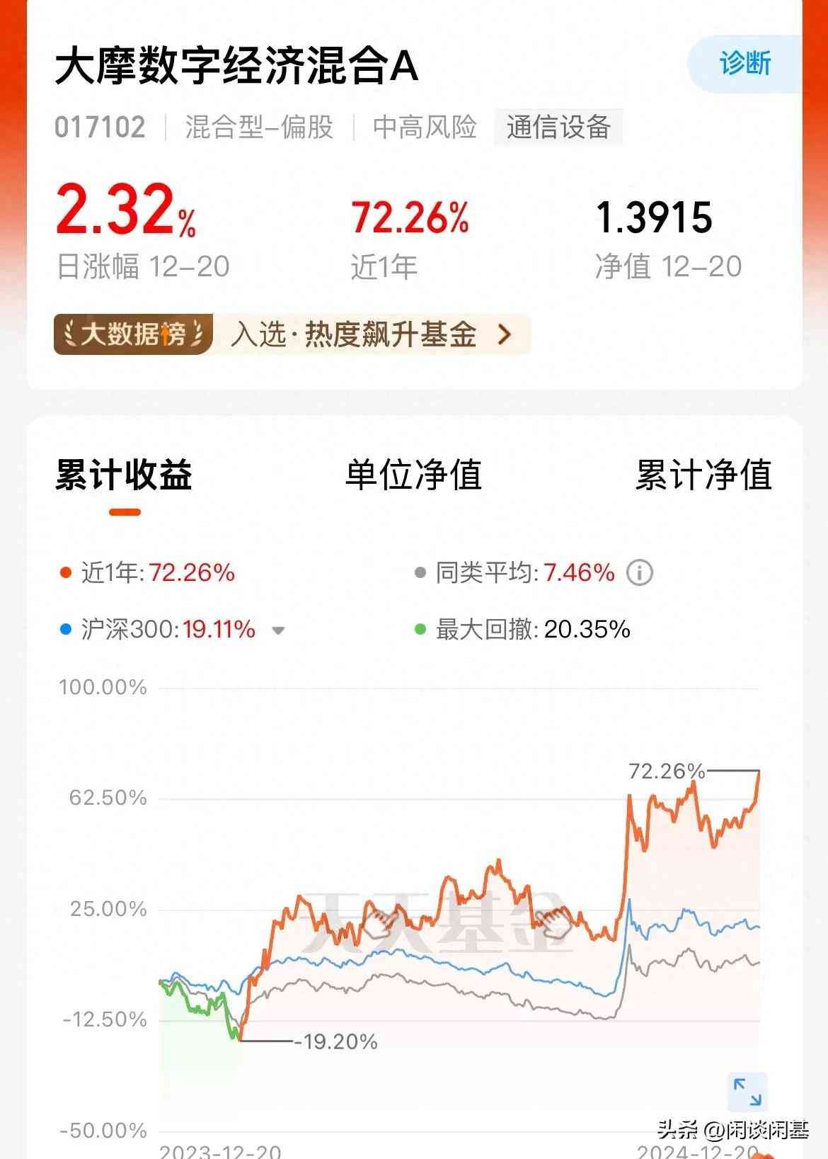 第二是大摩数据经济混合C今年以来累计涨幅70.29%,