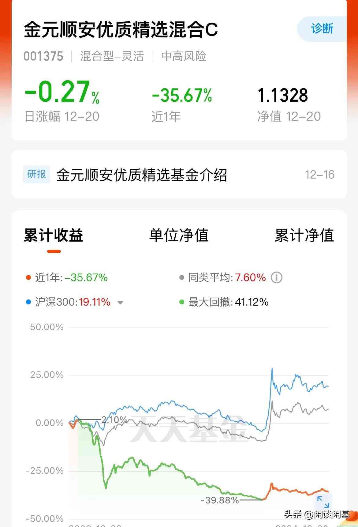 倒数第二是金元顺安优质精选混合A今年以来累计跌幅36.37%,