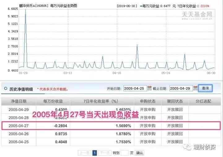 同年,易方达货币基金也曾出现过当日万份预期收益为-0.0409元的情况。