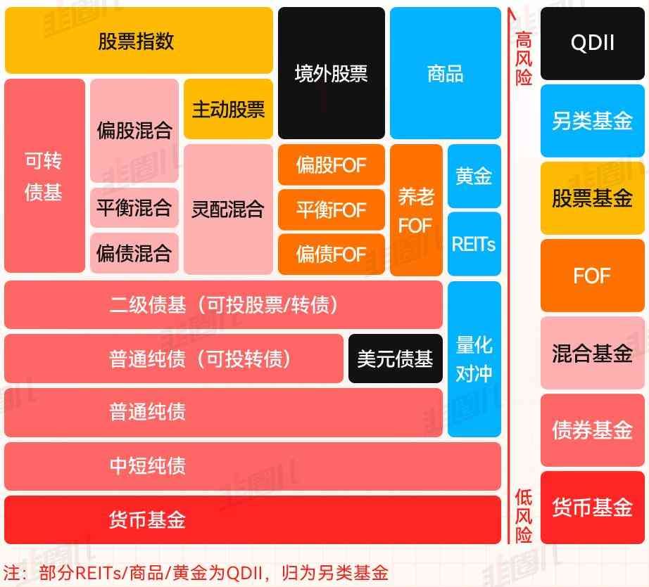 基金类型中投资风险最低的是什么意思,公募基金产品类型与风险示意图