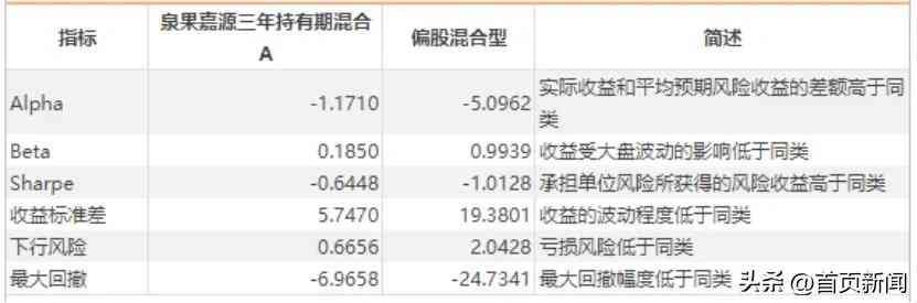 该基金阿尔法、贝塔、夏普等指标,均明显好于同类型基金,也就是说同样承担一个单位的风险,该基金盈利明显高于同类平均水平,而且收益受到大盘影响较小。