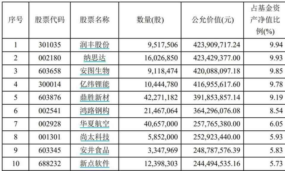 从中庚价值先锋基金2024年中期报告来看,该基金重点配置了制造业行业,占比82.68%,其次为交通运输、仓储和邮政业 ,占比6.05%。截至二季度末,该基金的前十大重仓股有润丰股份、纳思达、安图生物、亿纬锂能、鼎盛新财、鸿路钢构、华夏航空、尚太科技、安井食品、新点软件。