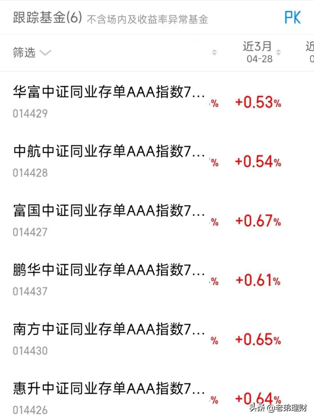 同业存单基金:风险极低,不需要择时,也不需要特别多的选择,买单个或者买两三个都行,不要7天内卖出。